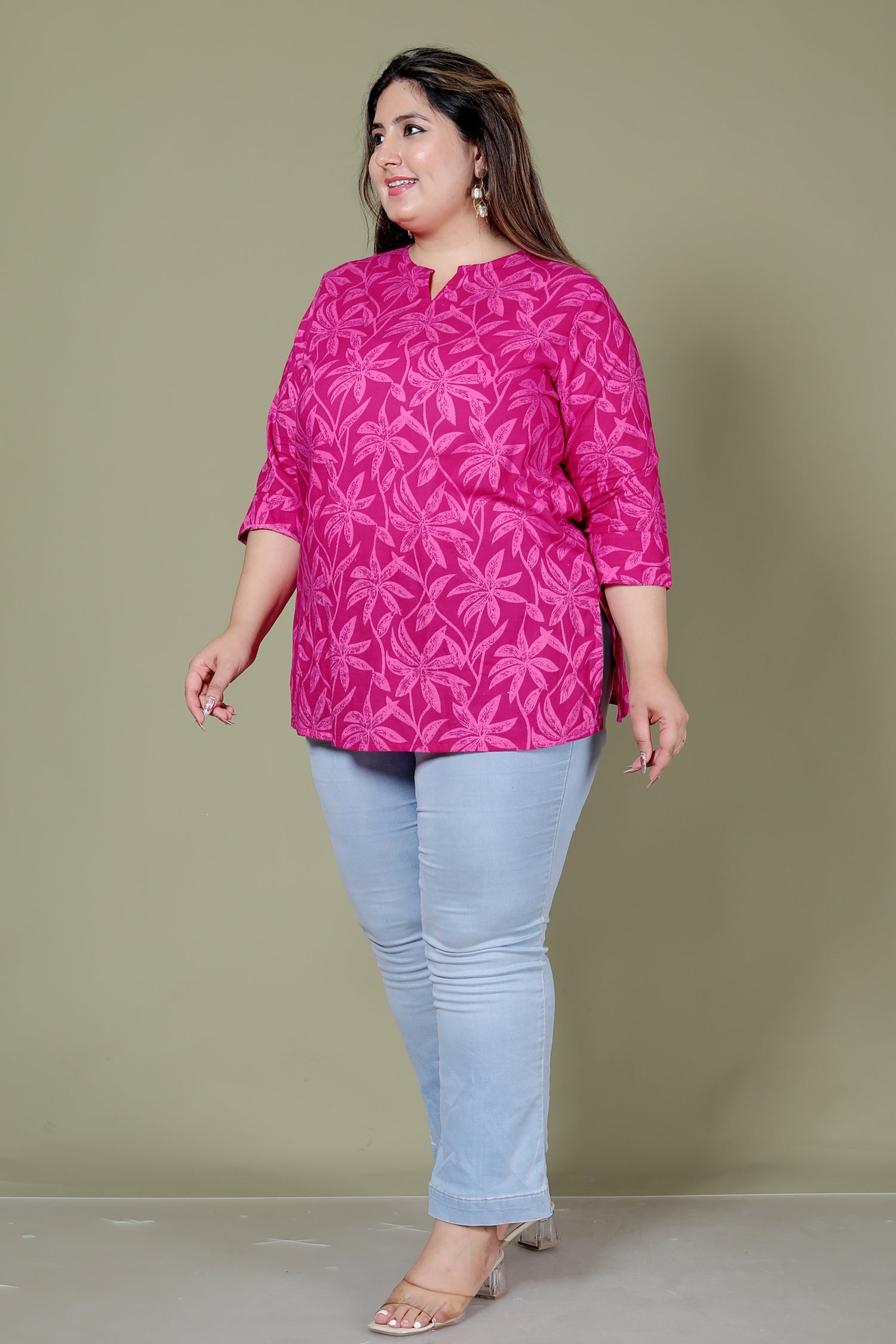 FLOWER PRINT COTTON TOP IN FUCHSIA PINK COLOUR BY PLUSSIZEKURTI