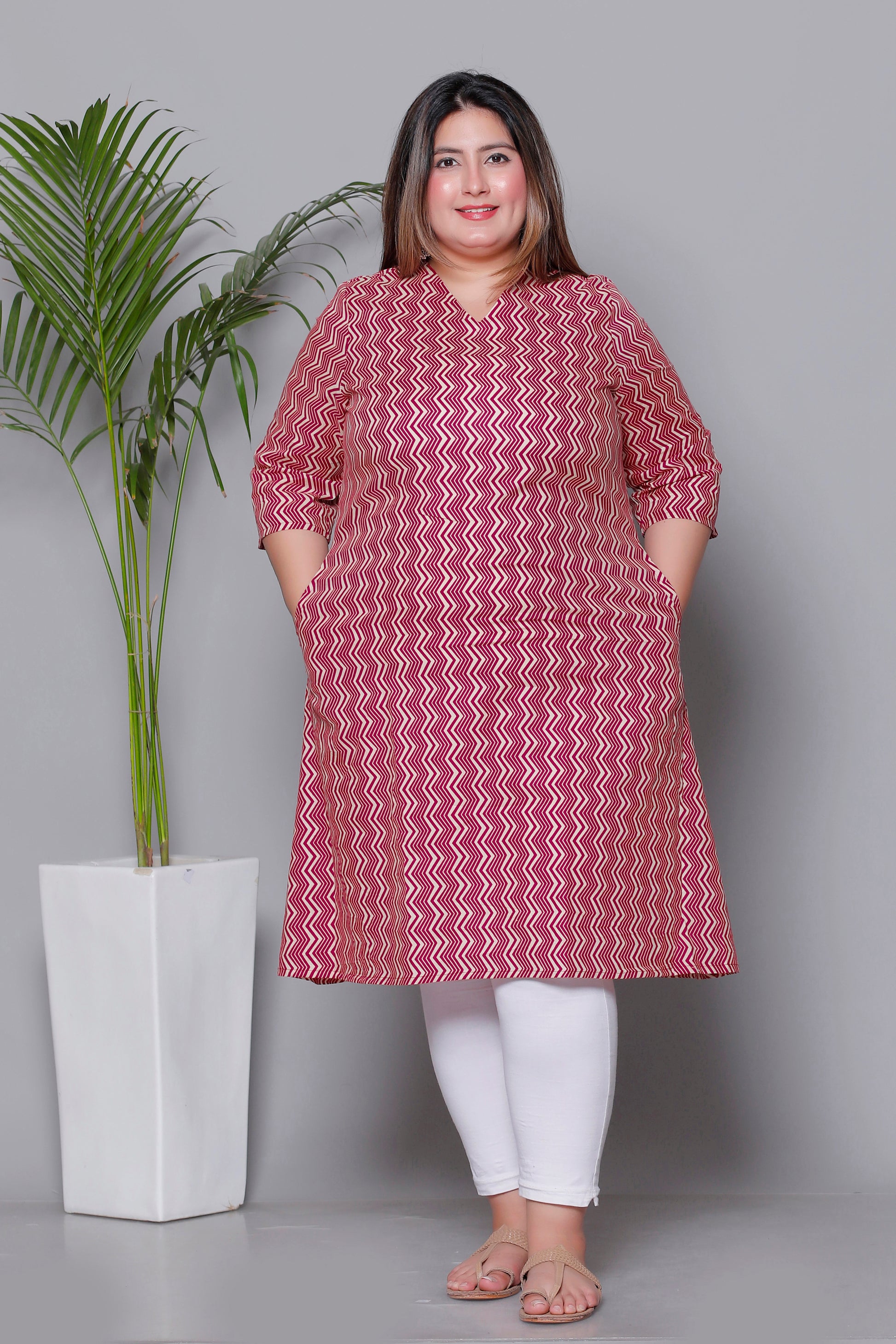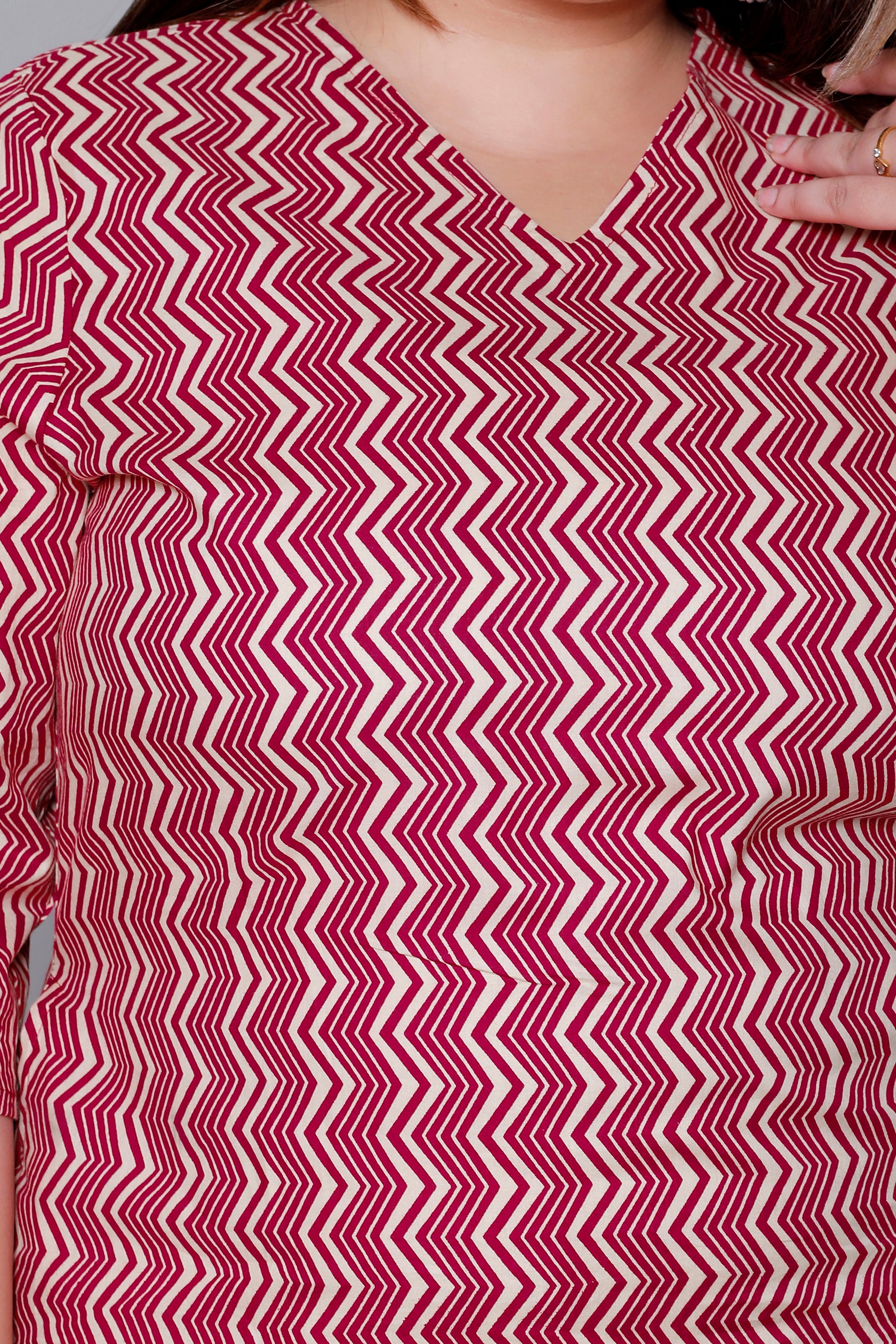 Sleeves: 3/4th Sleeves with matching chevron print