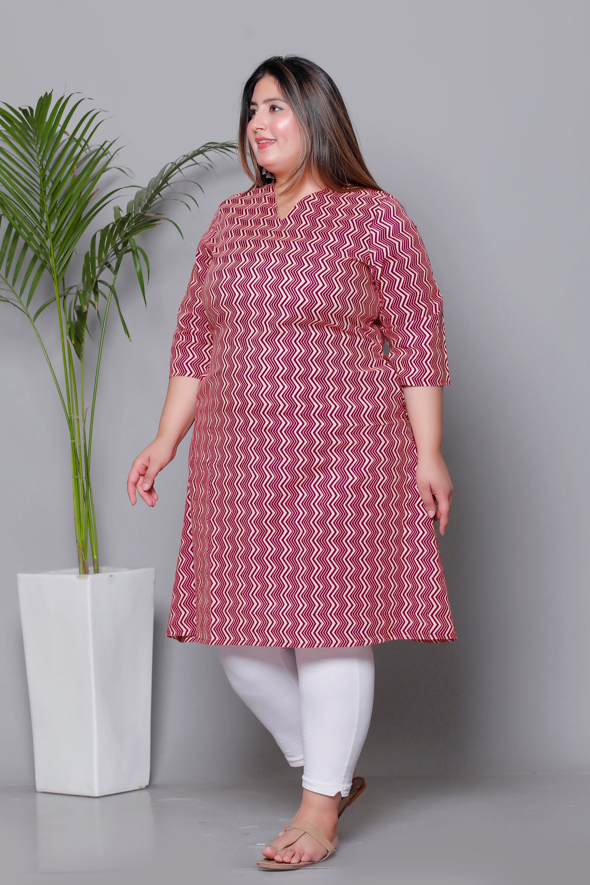 A stylish and comfortable A-line kurti featuring a modern micro chevron pattern—perfect for office wear, daily outings, or casual occasions.