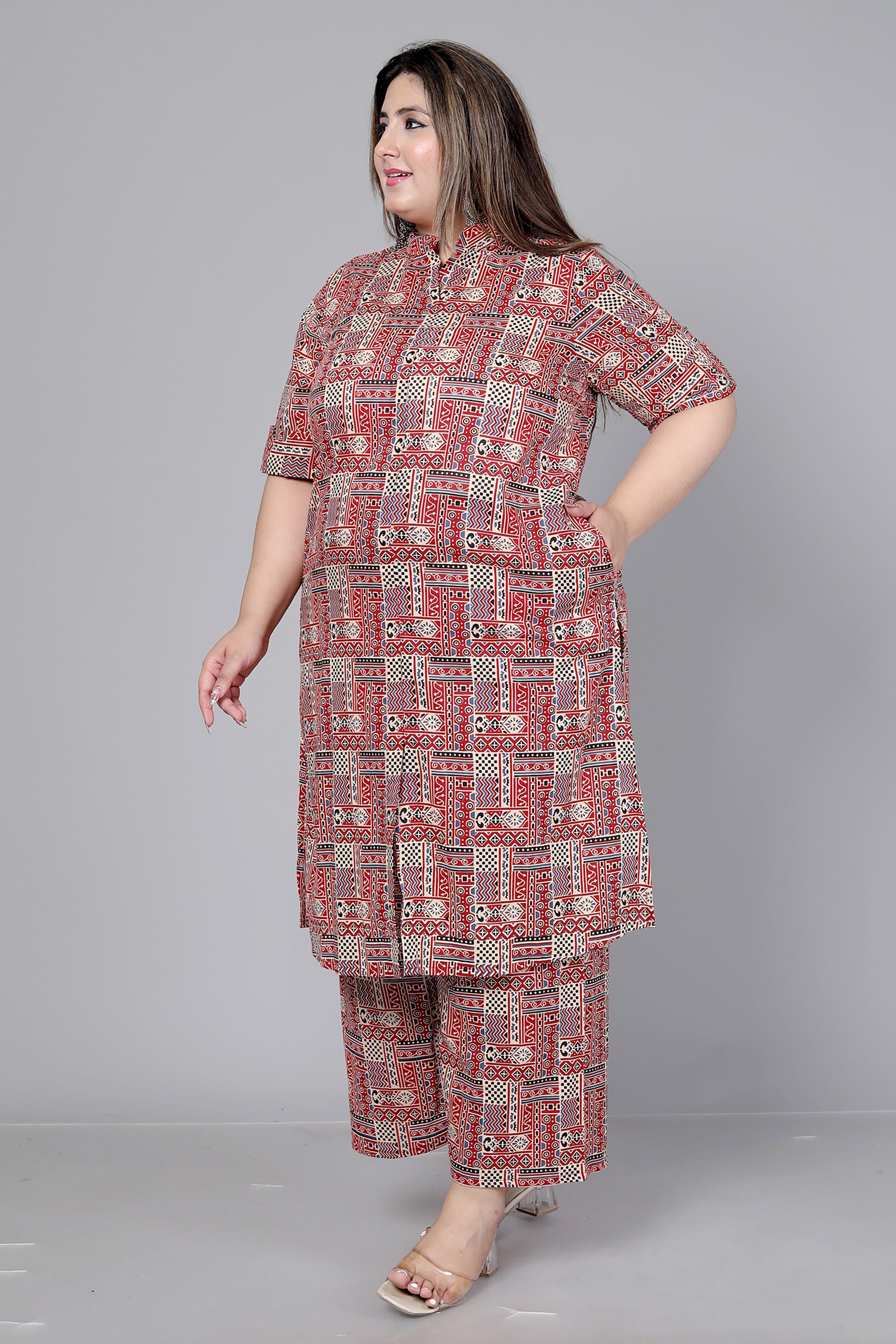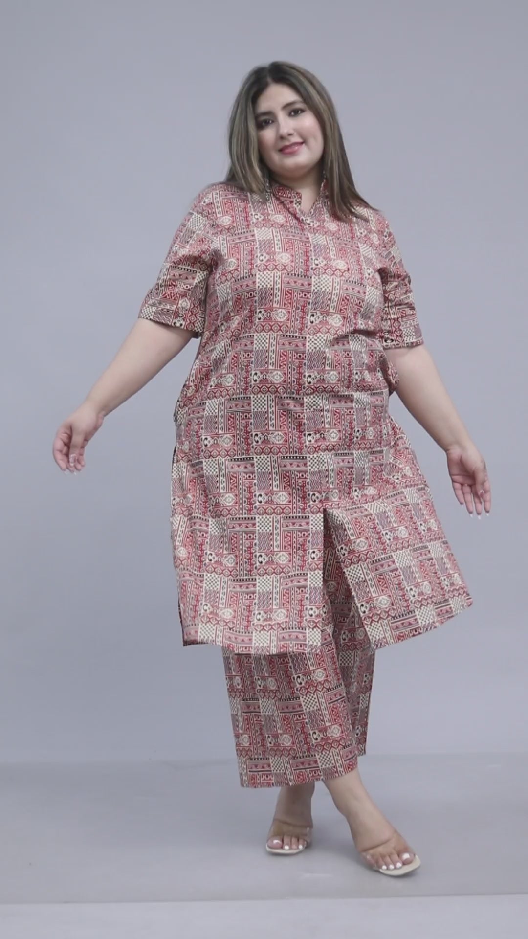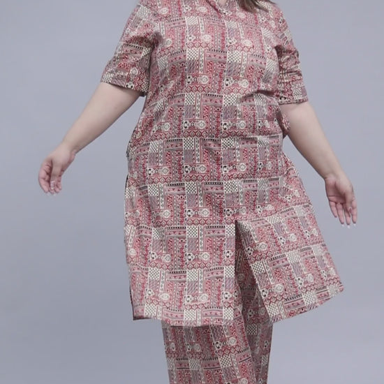 TRIBAL GEOMETRIC PRINT COTTON 2 PEICE KURTA PLAZZO IN RUST/BEIGE BY PLUSSIZEKURTI