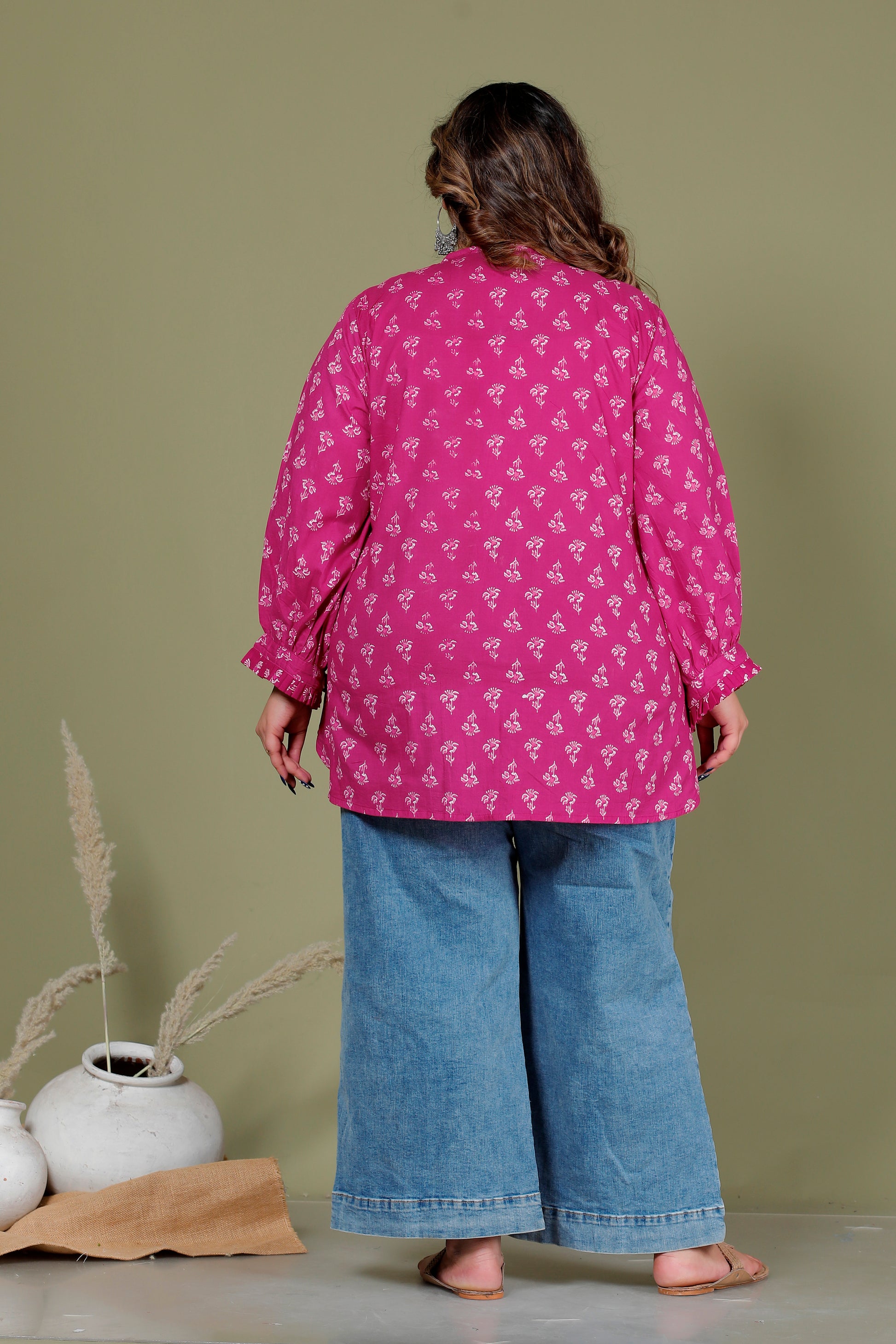 FLORAL BUTI PRINT COTTON SHIRT TOP IN MAGENTA PINK COLOUR BY PLUSSIZEKURTI
