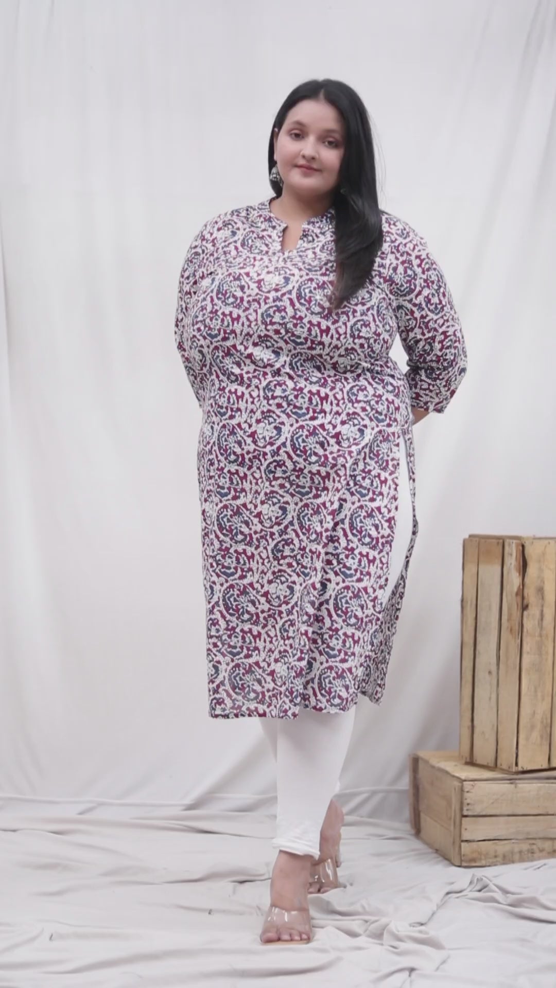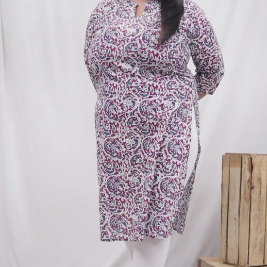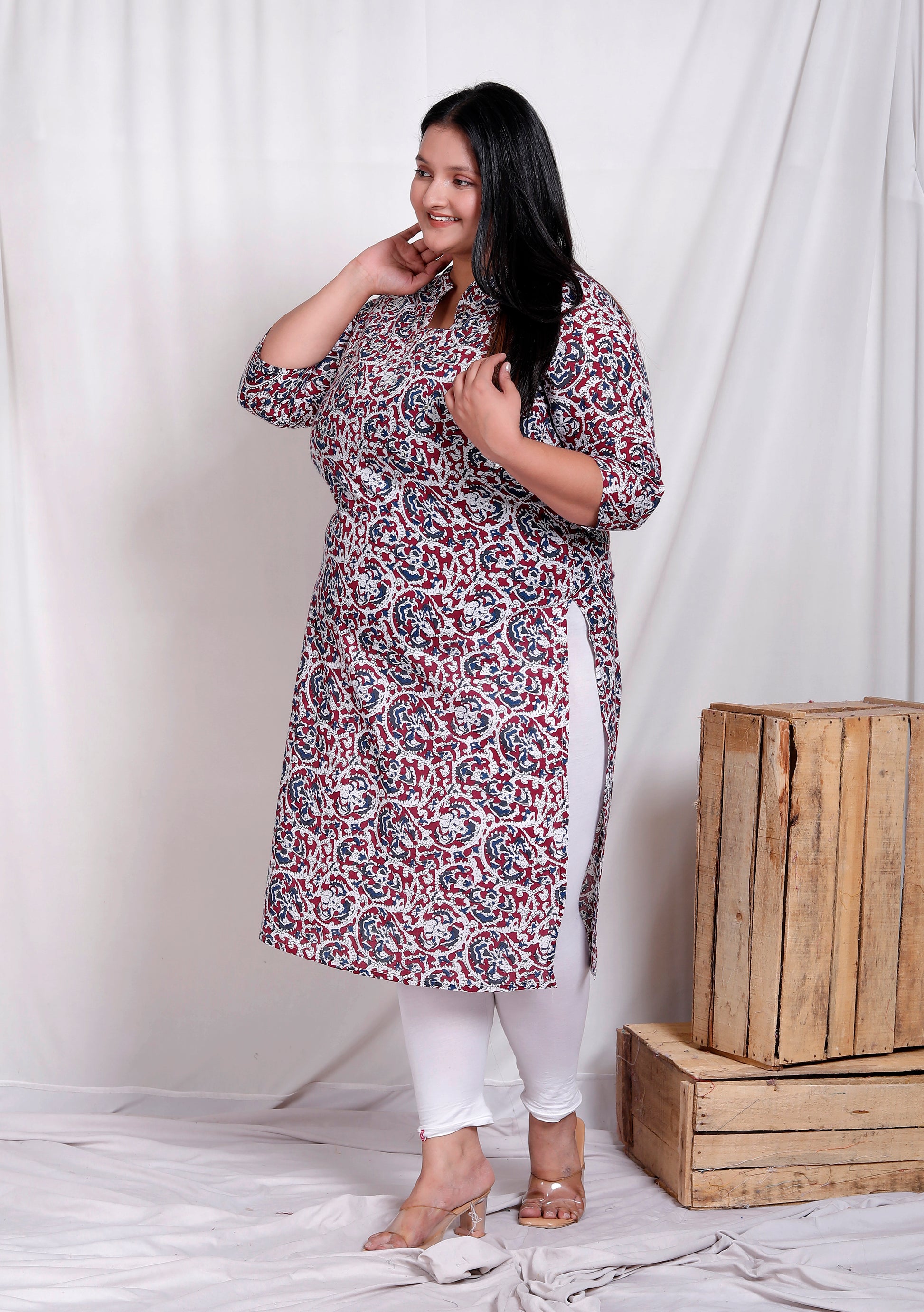 ABSTRACT FLORAL BLOCK PRINT COTTON KURTI IN MAROON/BLUE BY PLUSSIZEKURTI