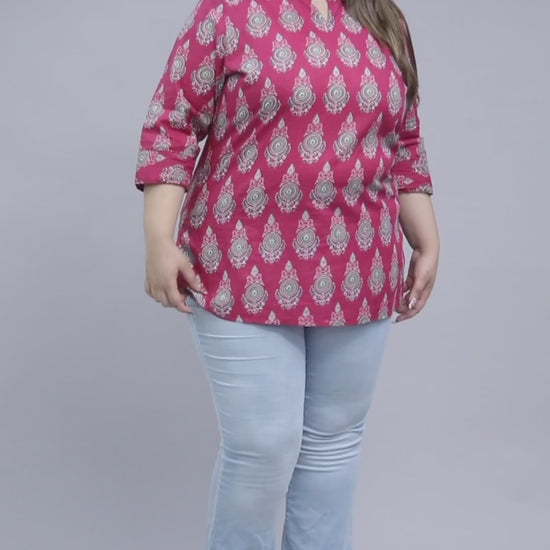 TRADITIONAL BUTI PRINT COTTON TOP IN WINE RED COLOUR BY PLUSSIZEKURTI