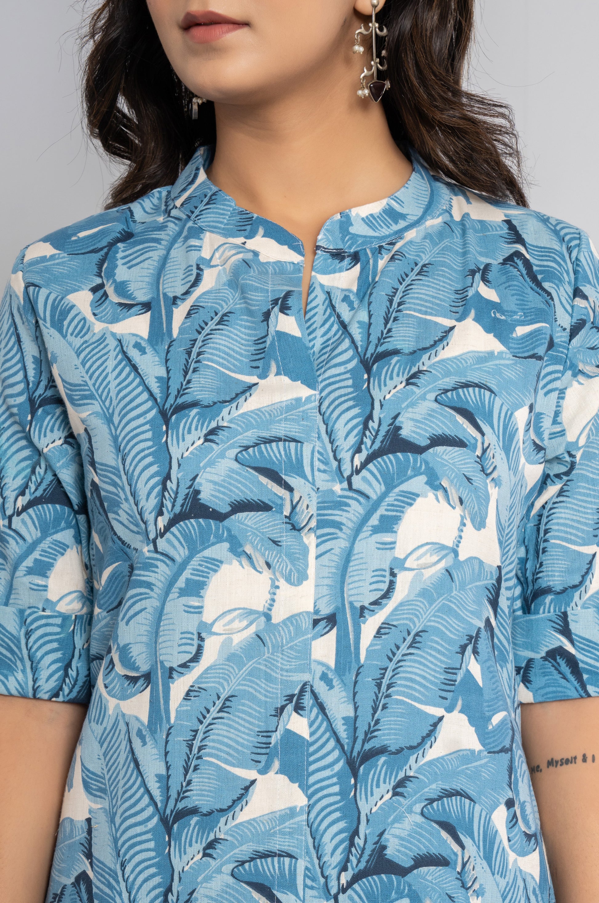 JUNGLE PRINT COTTON 2 PEICE KURTI PLAZZO SET IN SKYBLUE BY PLUSSIZEKURTI