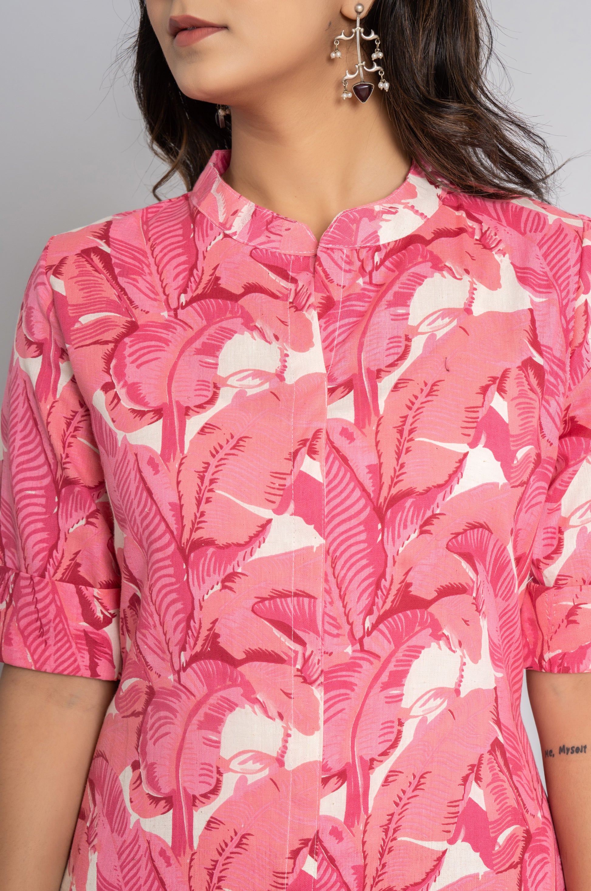 JUNGLE PRINT COTTON 2 PEICE KURTI PLAZZO SET IN PINK BY PLUSSIZEKURTI