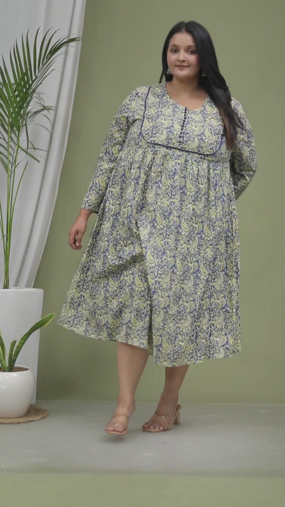 Key Features: Paisley + floral handblock-inspired motifs | Round yoke neckline with contrast piping | Long straight sleeves | 40 length | Breathable cotton fabric