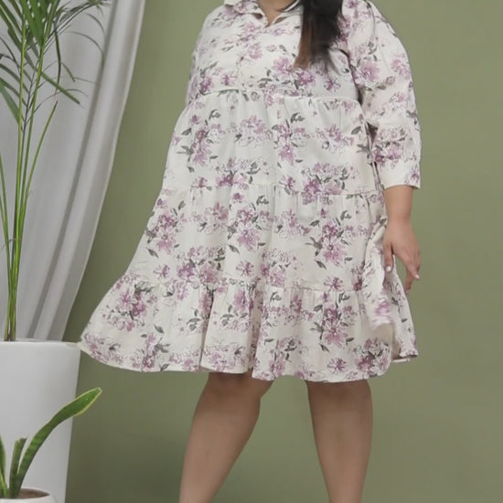 FLORAL PRINT COTTON FLEX DRESS IN LAVENDER/BEIGE BY PLUSSIZEKURTI