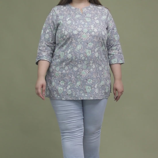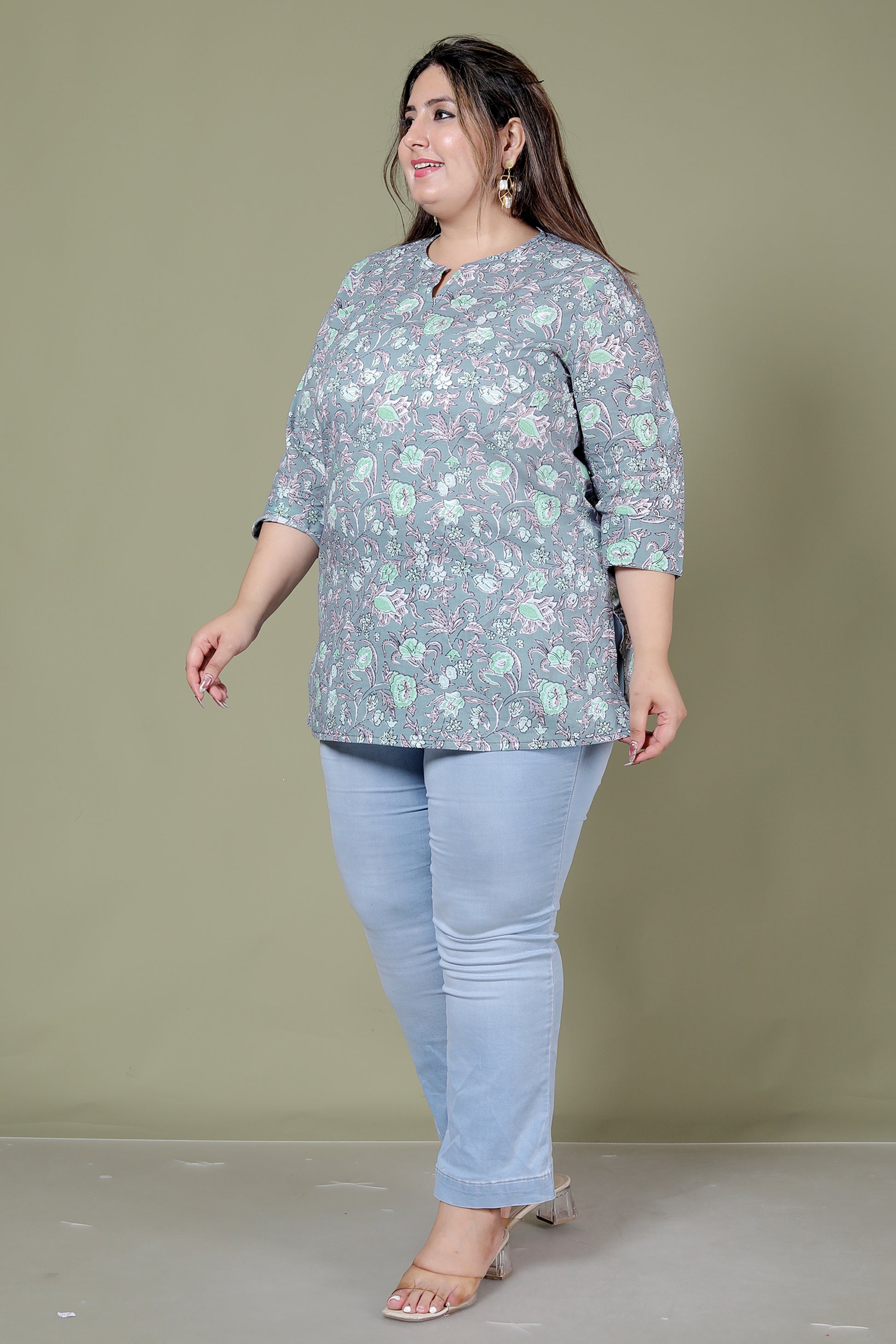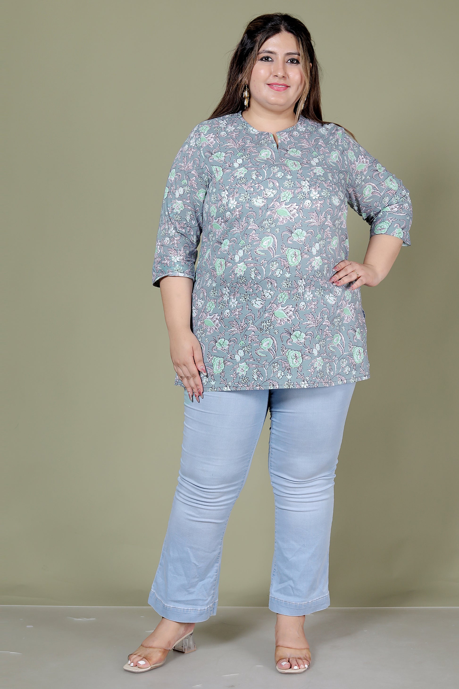 FLORAL GARDEN PRINT COTTON TOP IN PASTEL GREY COLOUR BY PLUSSIZEKURTI