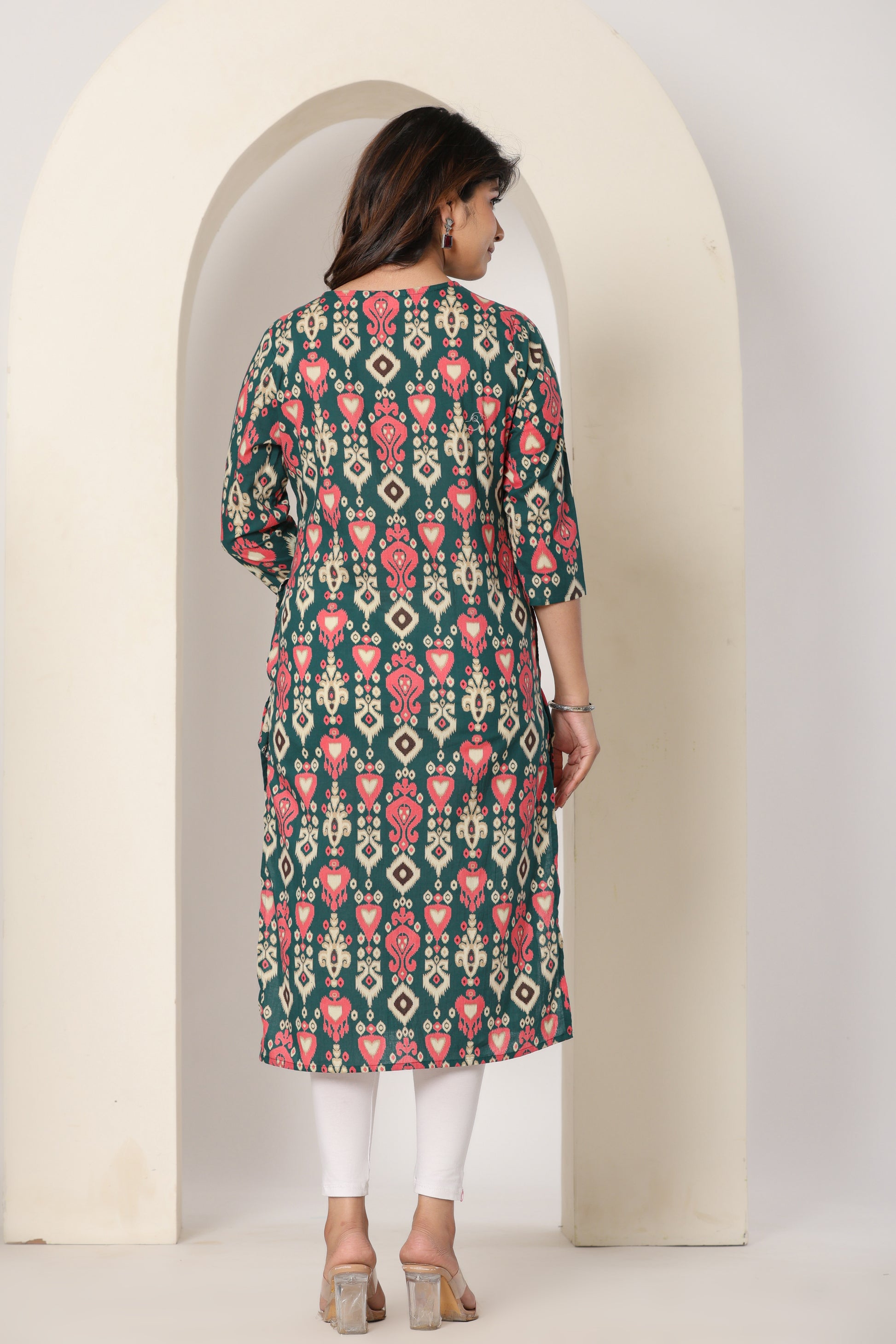 IKAT PRINTED COTTON KURTI TURQUOISE GREEN IN BY PLUSSIZE KURTI