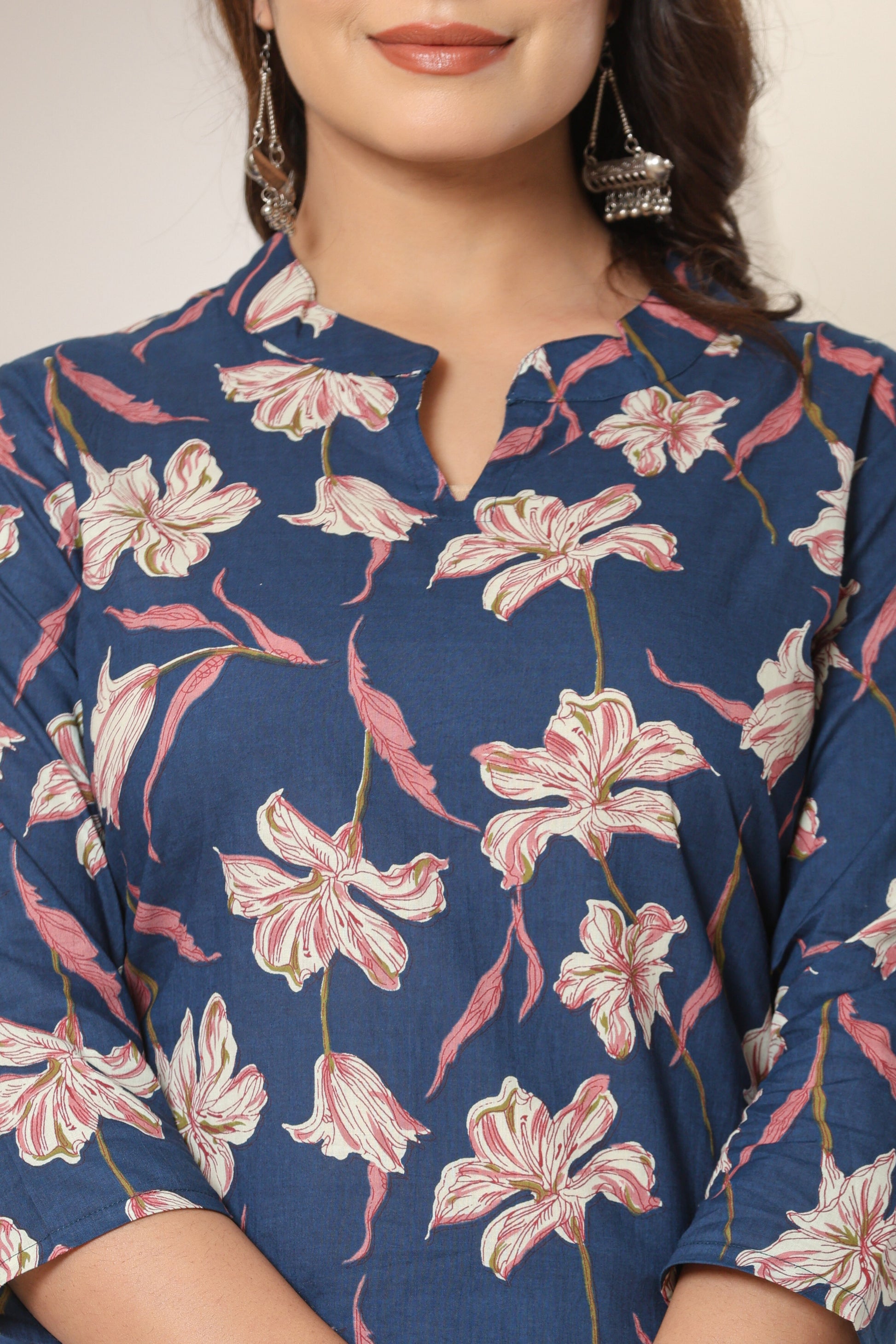 FLORAL PRINT COTTON KURTI IN BLUE BY PLUSSIZE KURTI