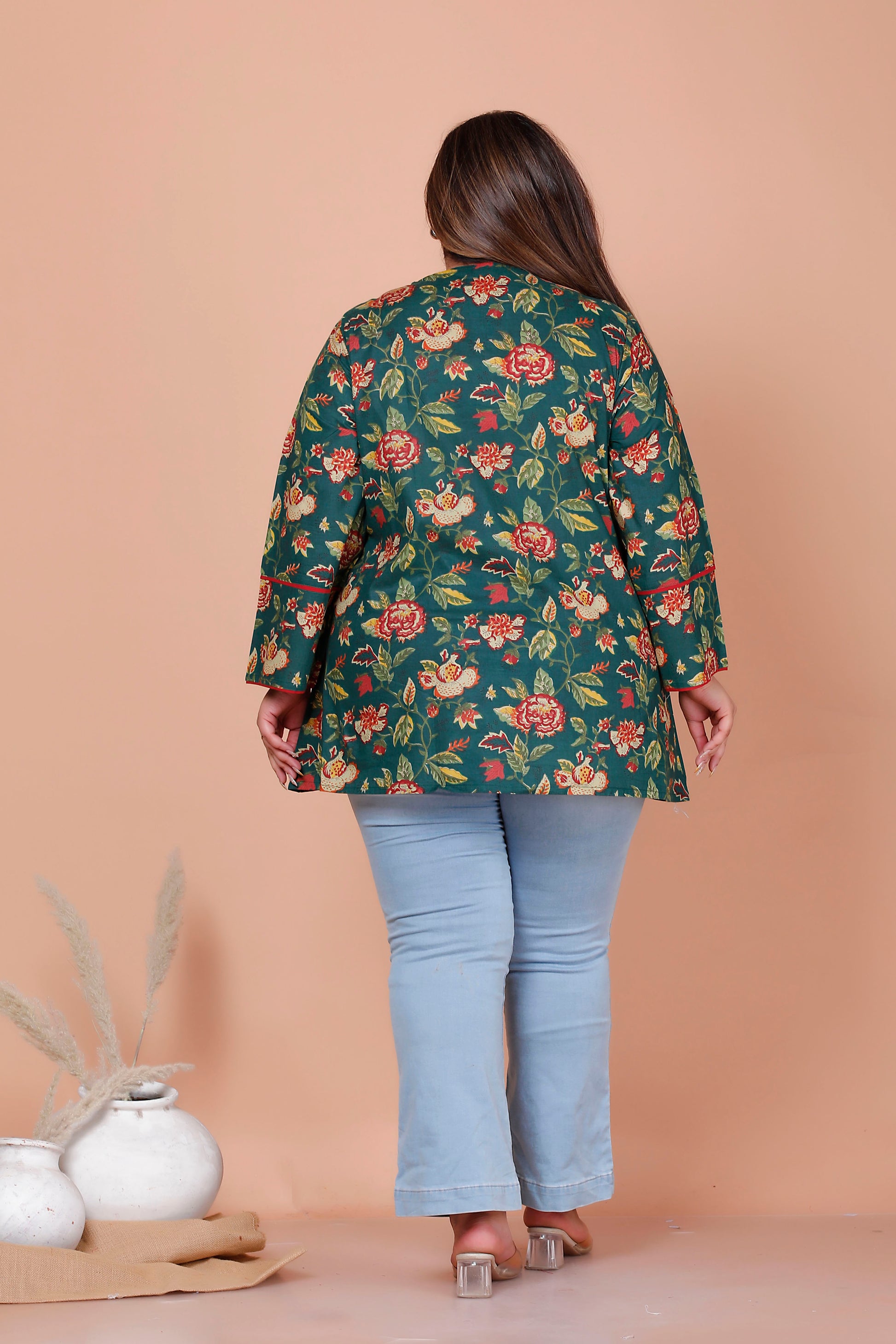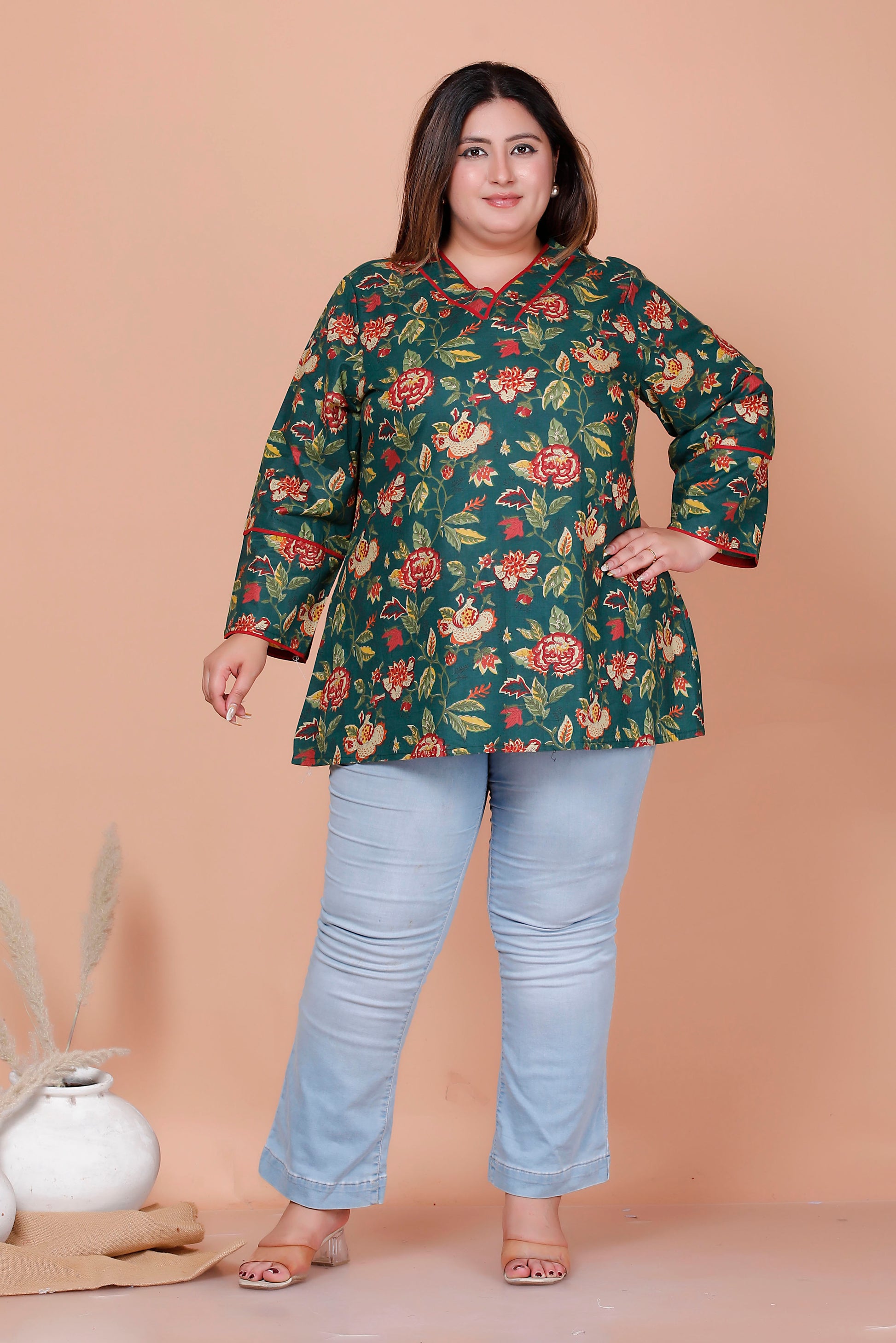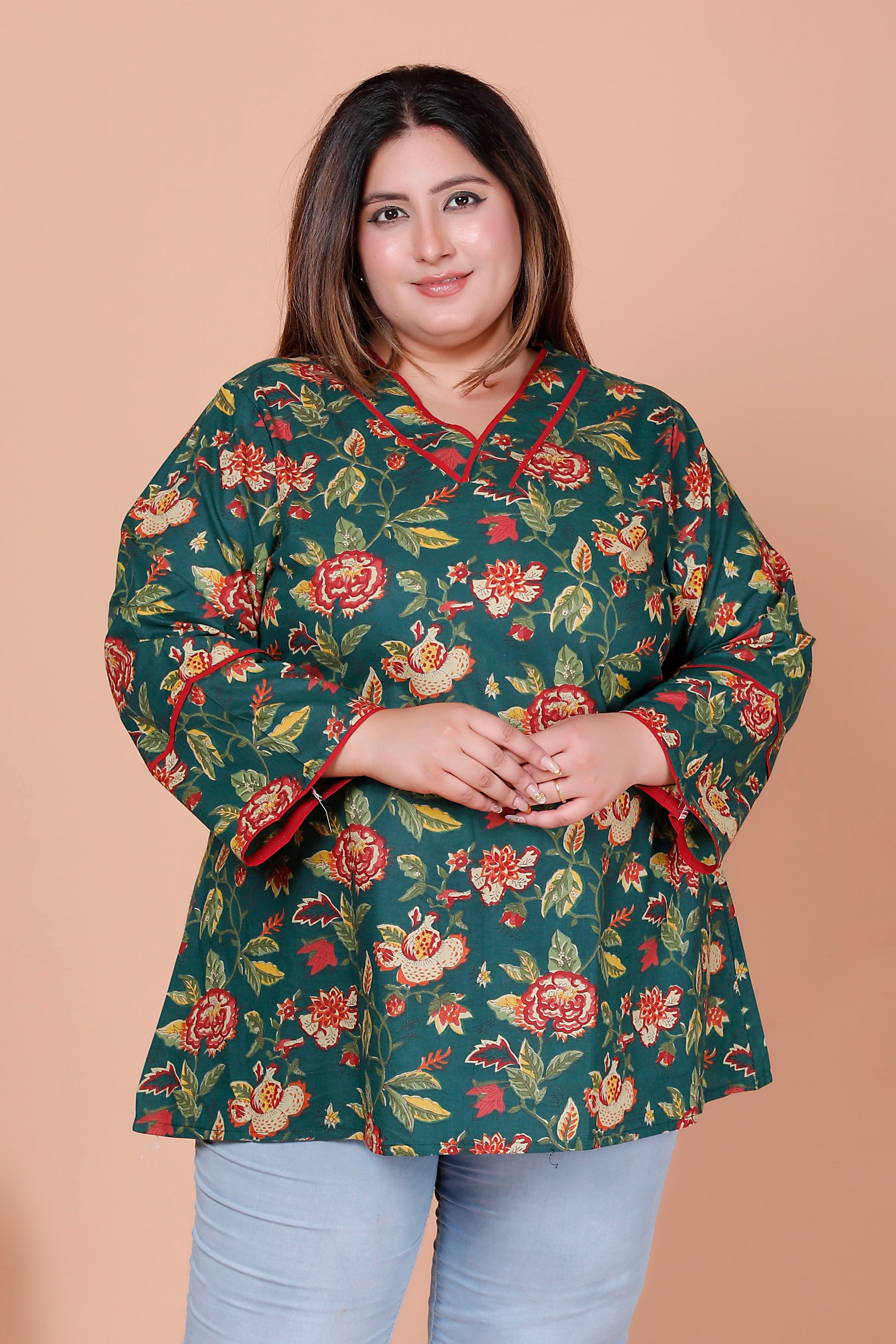 FLORAL VINE PRINT COTTON TOP IN NAVY BOTTLE GREEN COLOUR BY PLUSSIZEKURTI