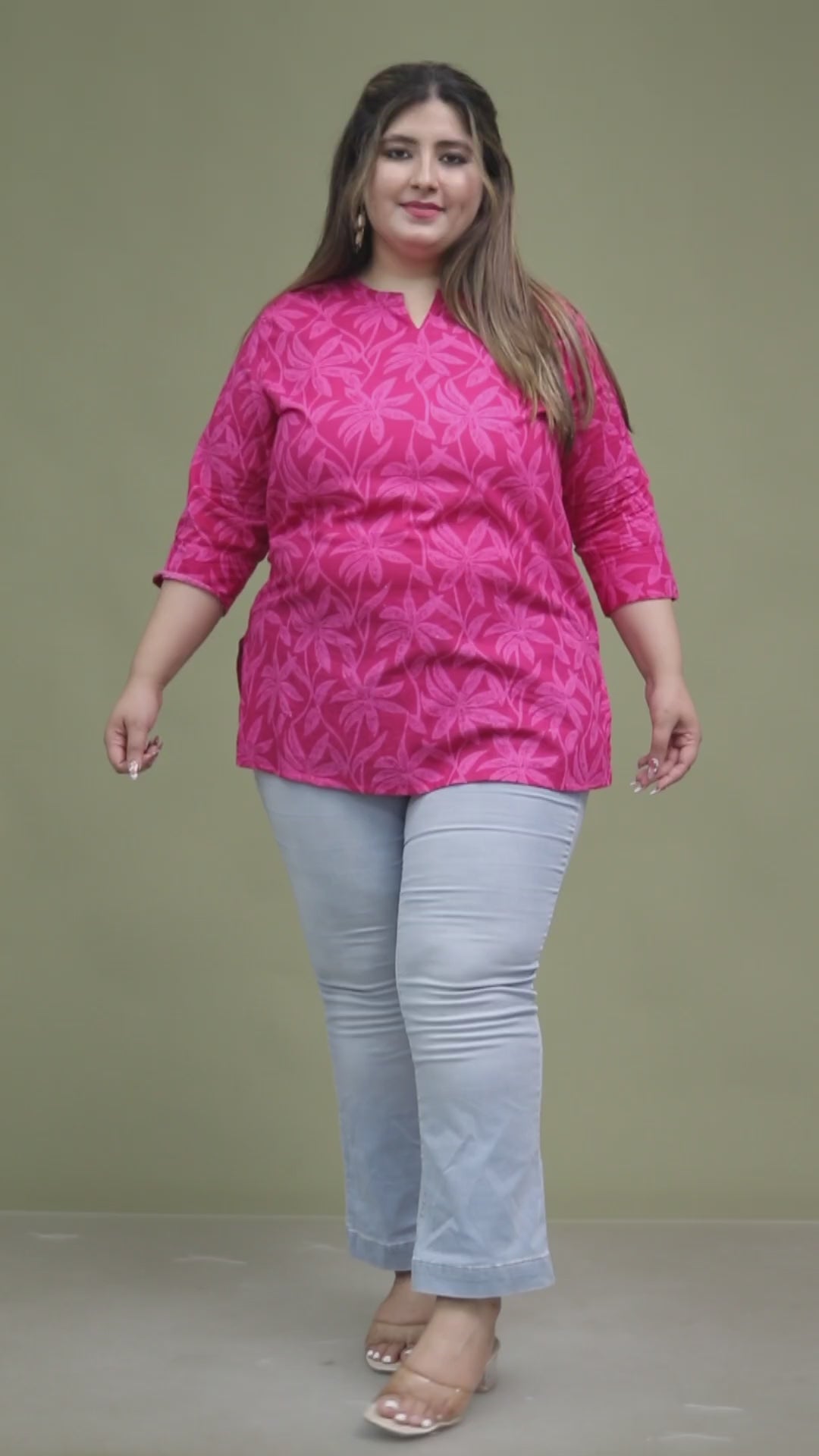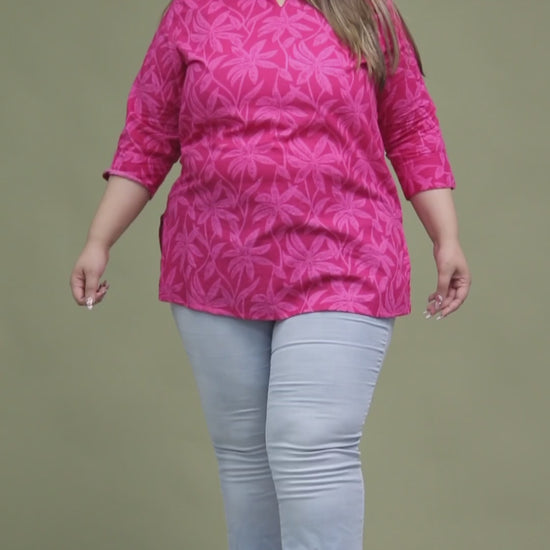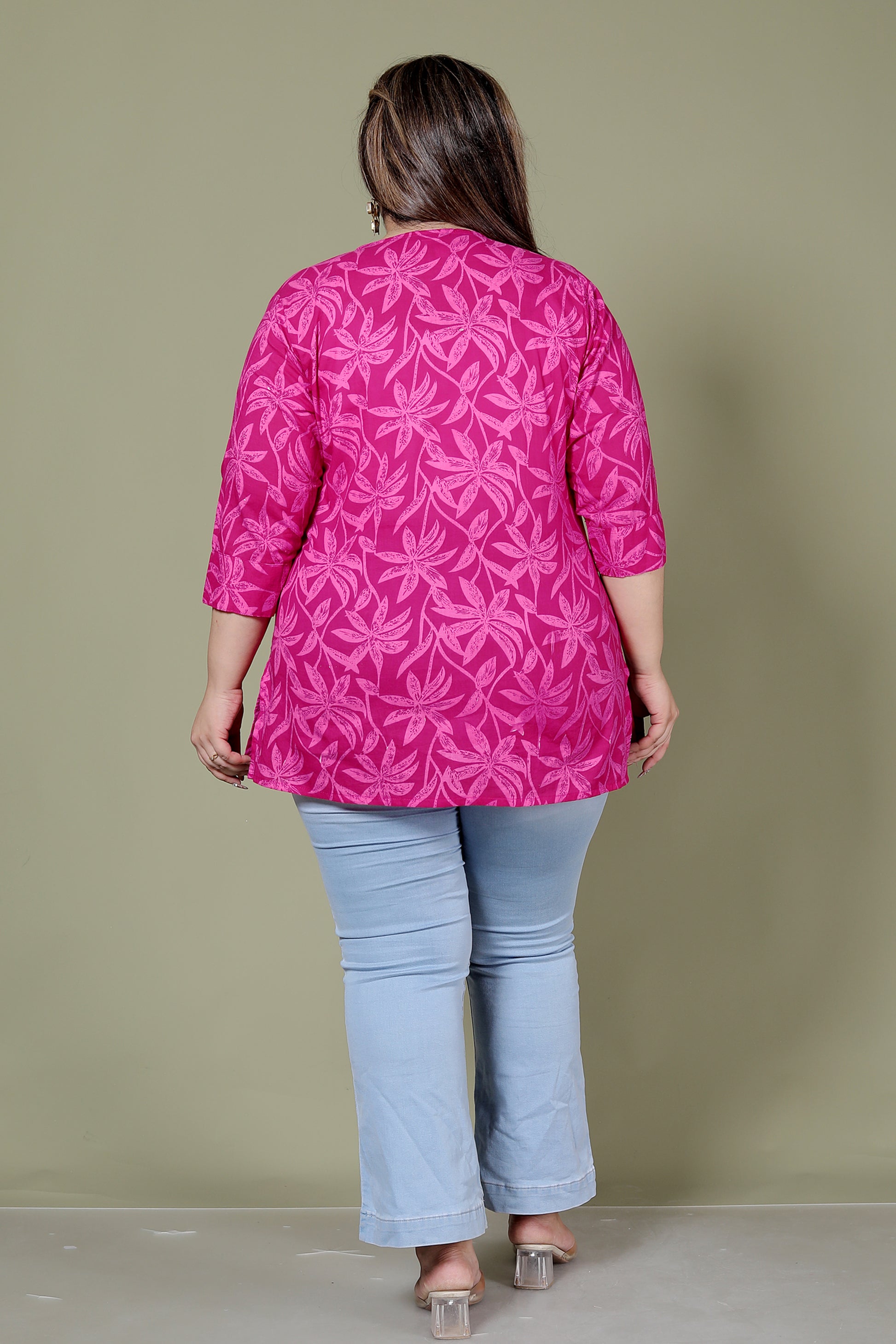 FLOWER PRINT COTTON TOP IN FUCHSIA PINK COLOUR BY PLUSSIZEKURTI