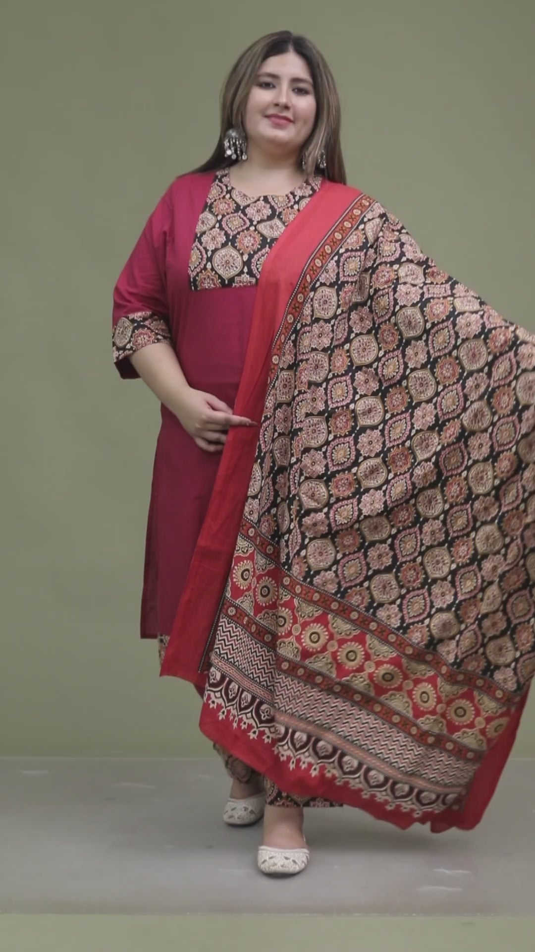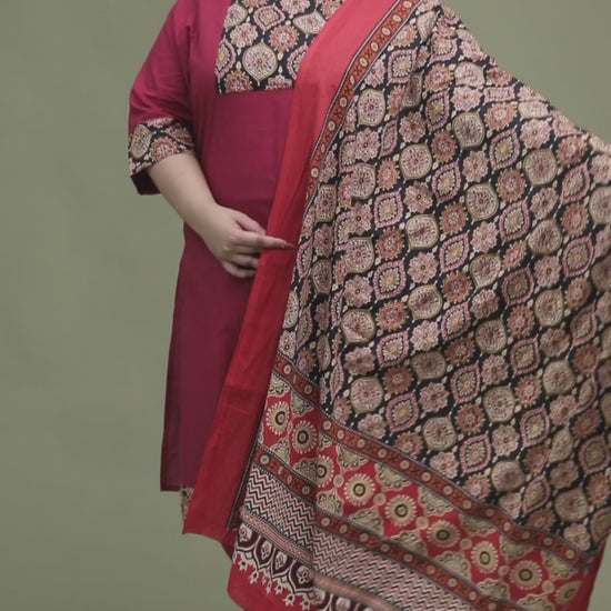 GEOMETRIC FLORAL SOLID COTTON 3 PEICE KURTI PANT SET IN WINEPINK BY PLUSSIZEKURTI