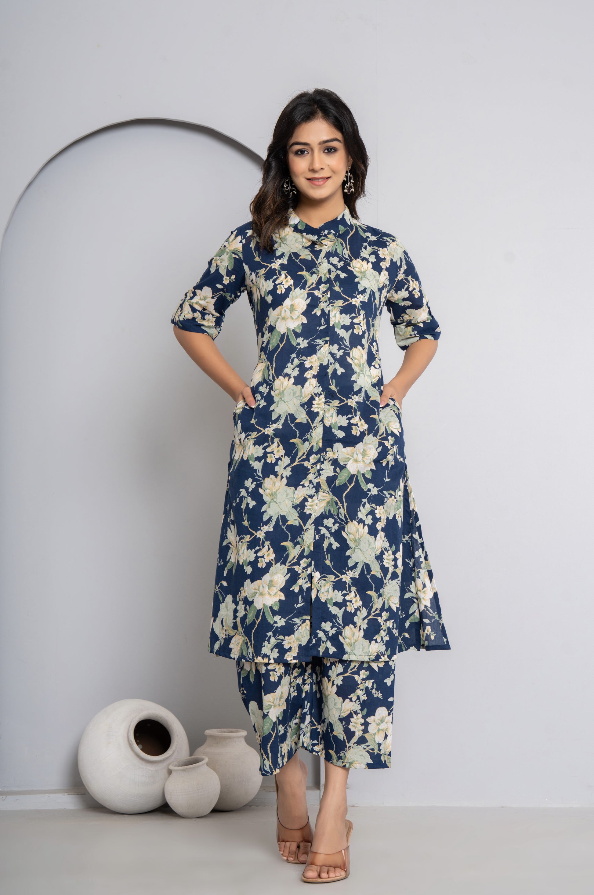 FLORAL PRINT COTTON 2 PEICE KURTI PLAZZO SET IN BLUE BY PLUSSIZEKURTI