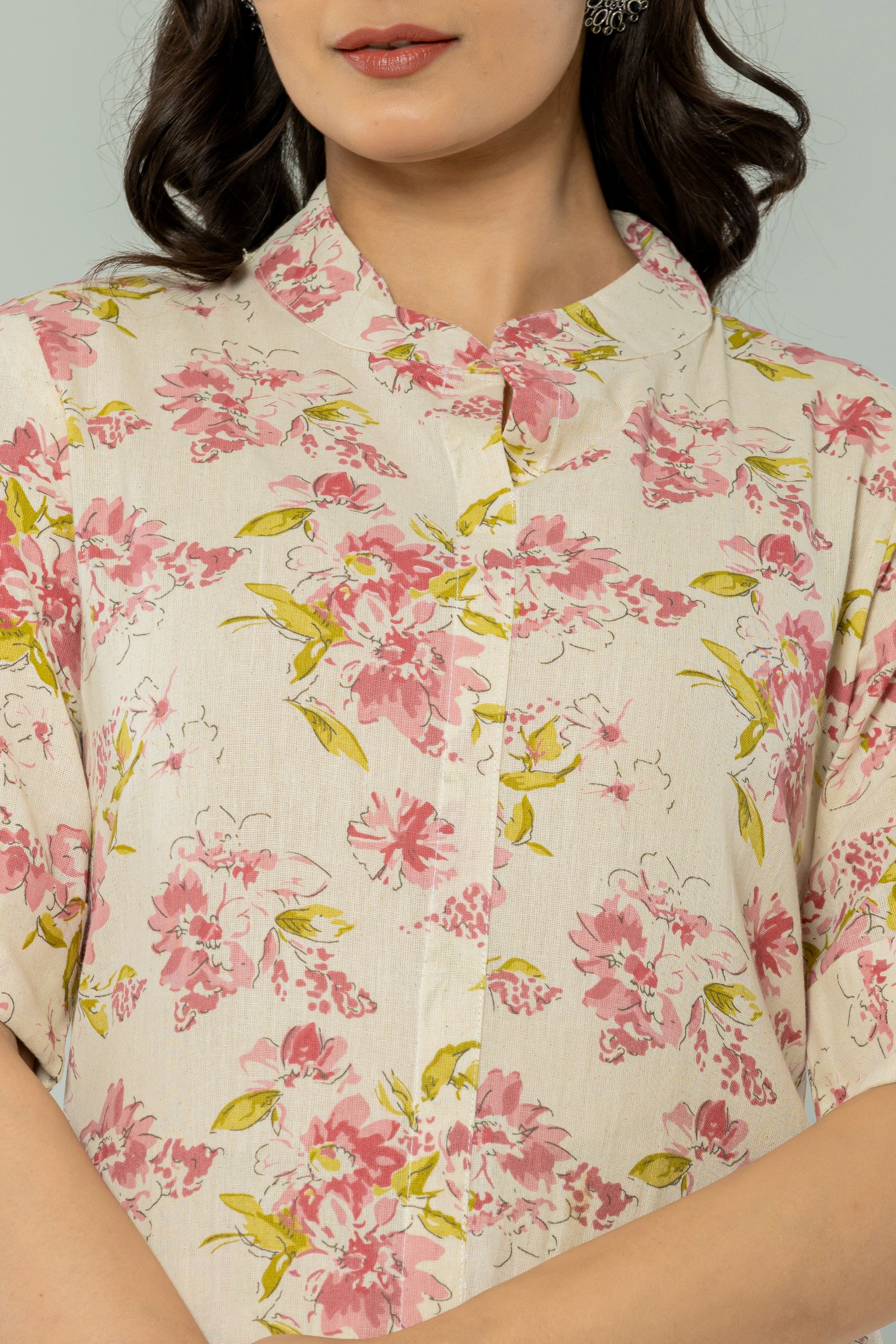 FLORAL PRINT COTTON FLEX 2 PEICE KURTI PLAZZO SET IN CREAM/PINK BY PLUSSIZEKURTI