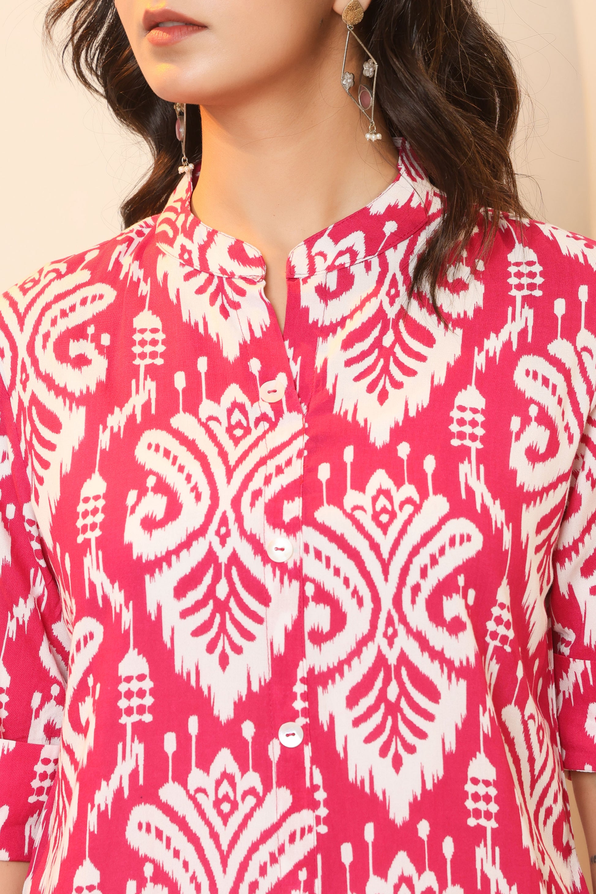 IKAT PRINT COTTON 2 PEICE KURTI PLAZZO SET IN RANIPINK BY PLUSSIZEKURTI