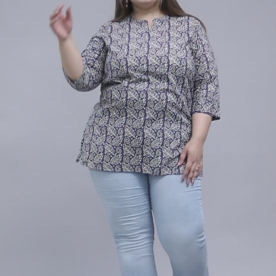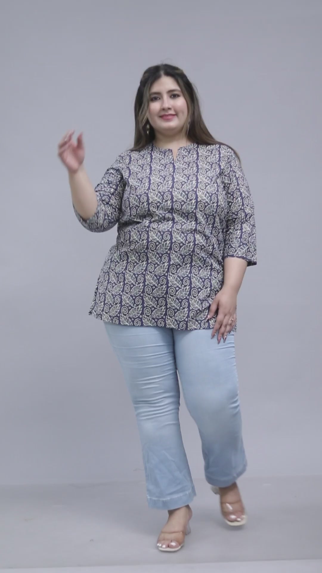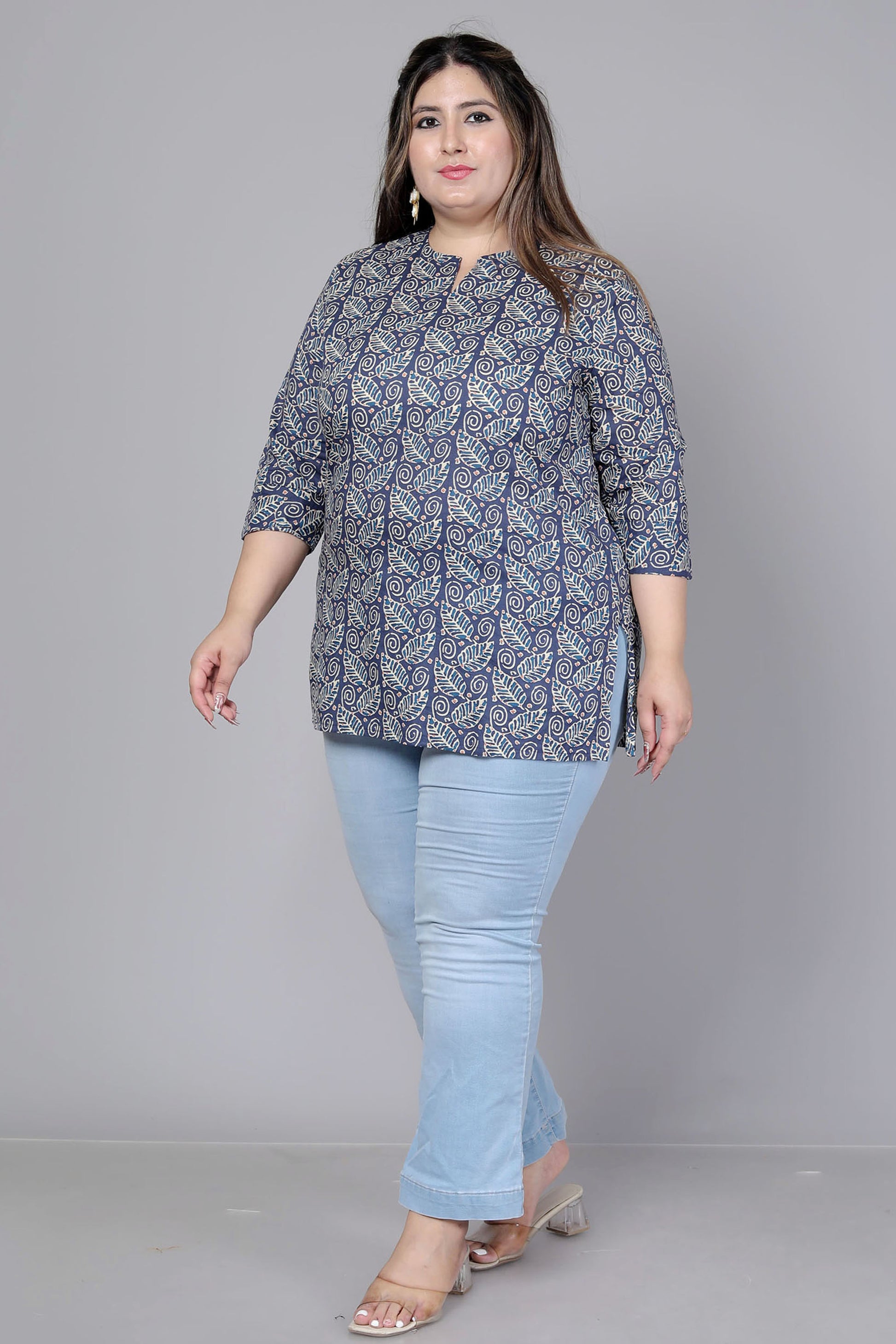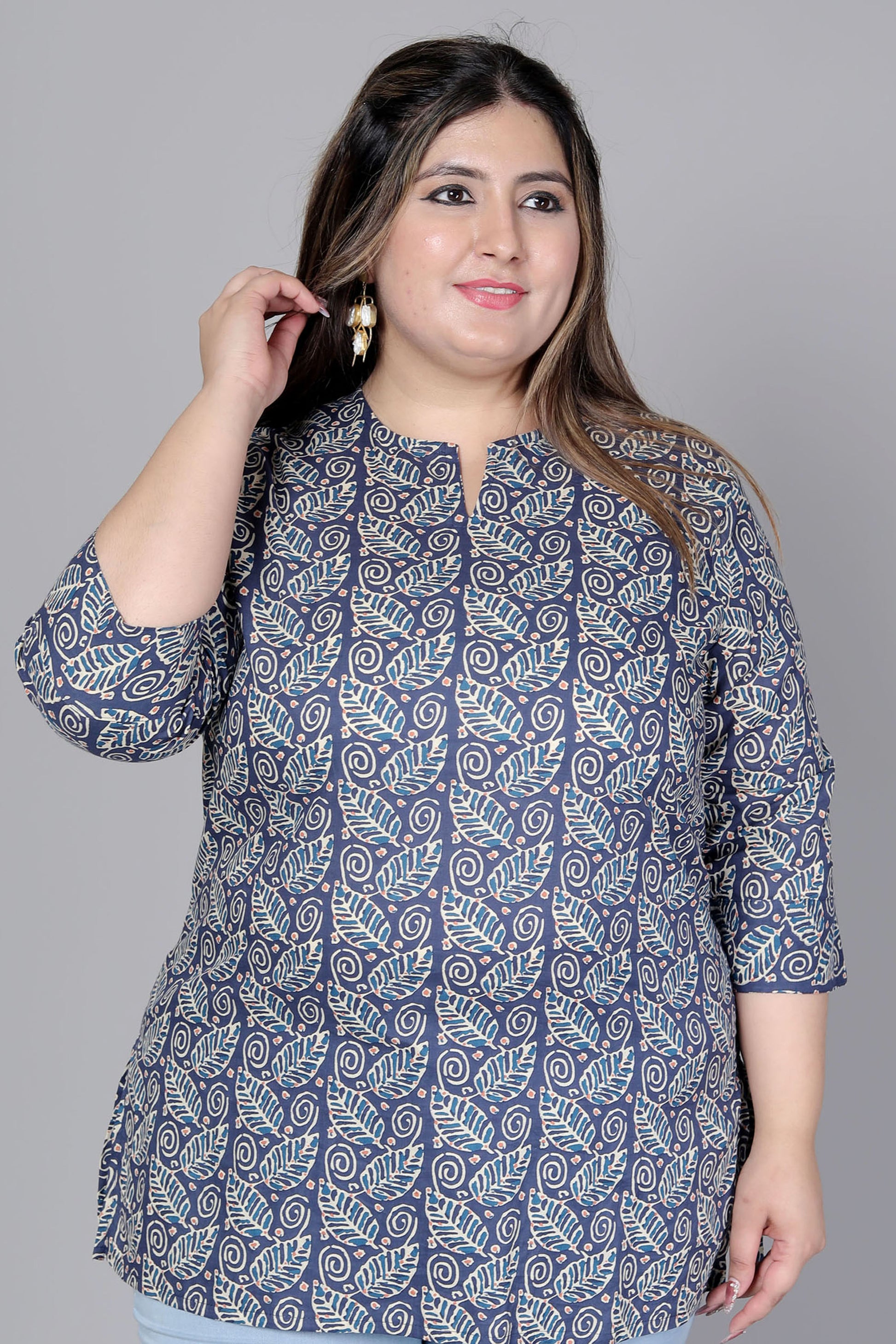 PAISLEY BLOCK PRINT COTTON TOP IN INDIGO BLUE COLOUR BY PLUSSIZEKURTI