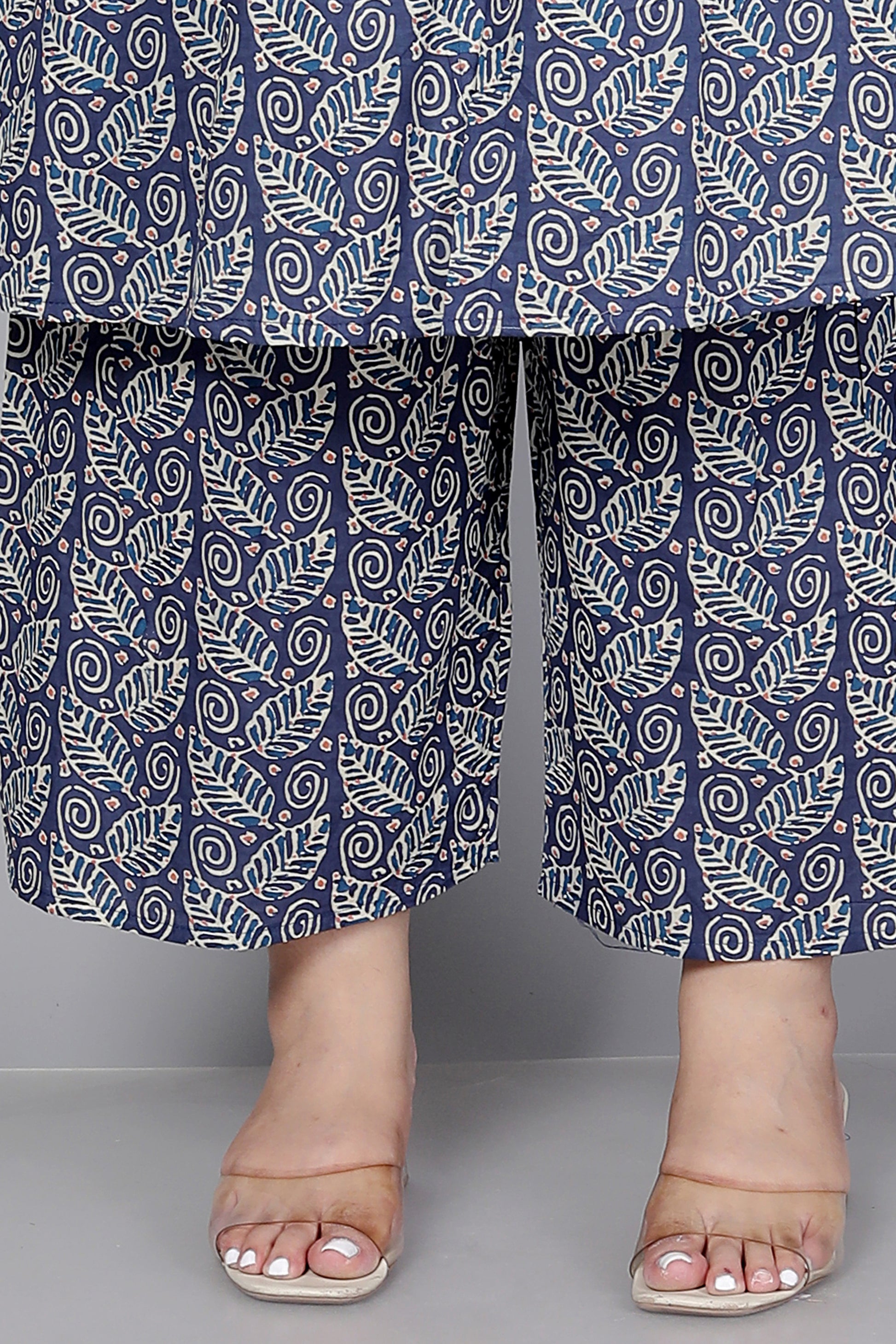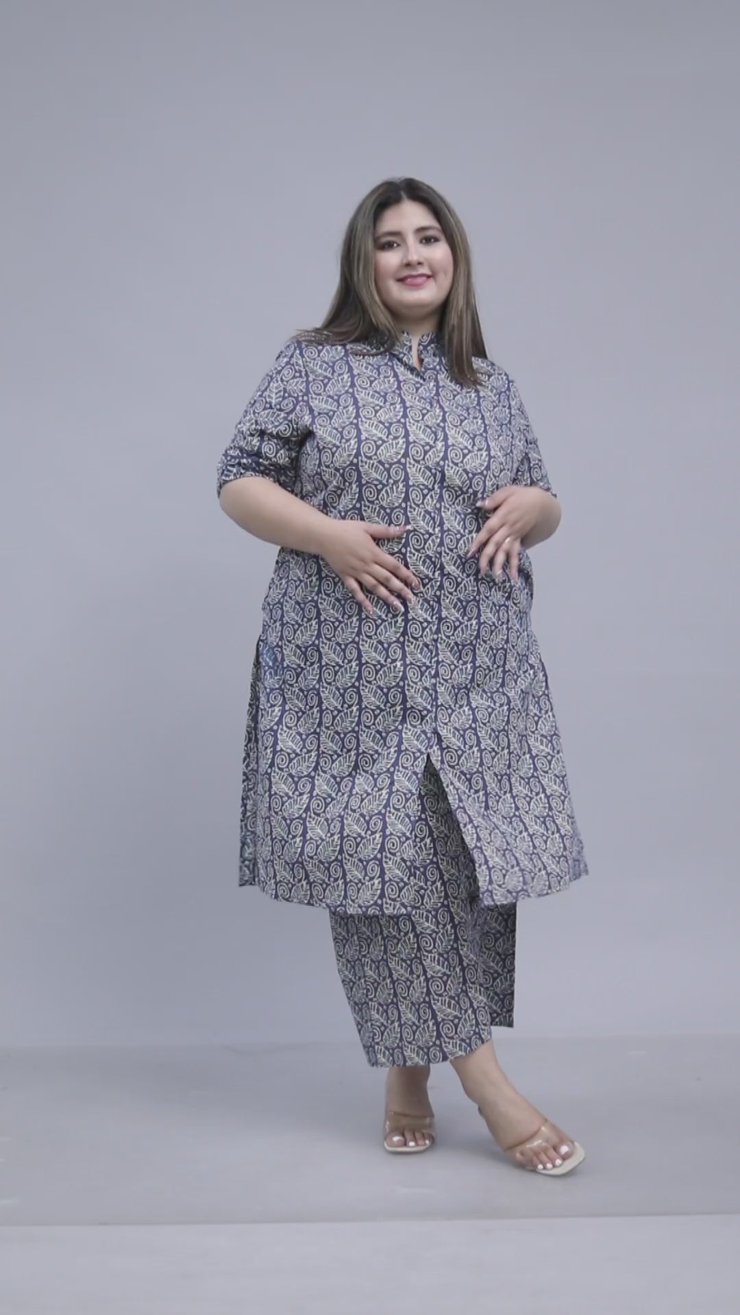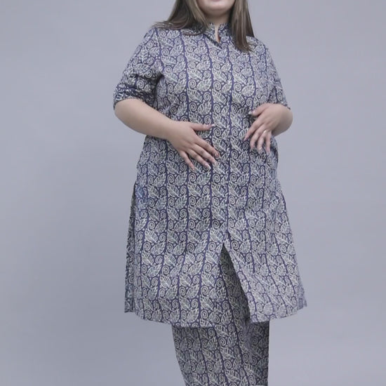 PAISLEY BLOCK PRINT COTTON 2 PEICE KURTA PLAZZO IN INDIGO BLUE BY PLUSSIZEKURTI
