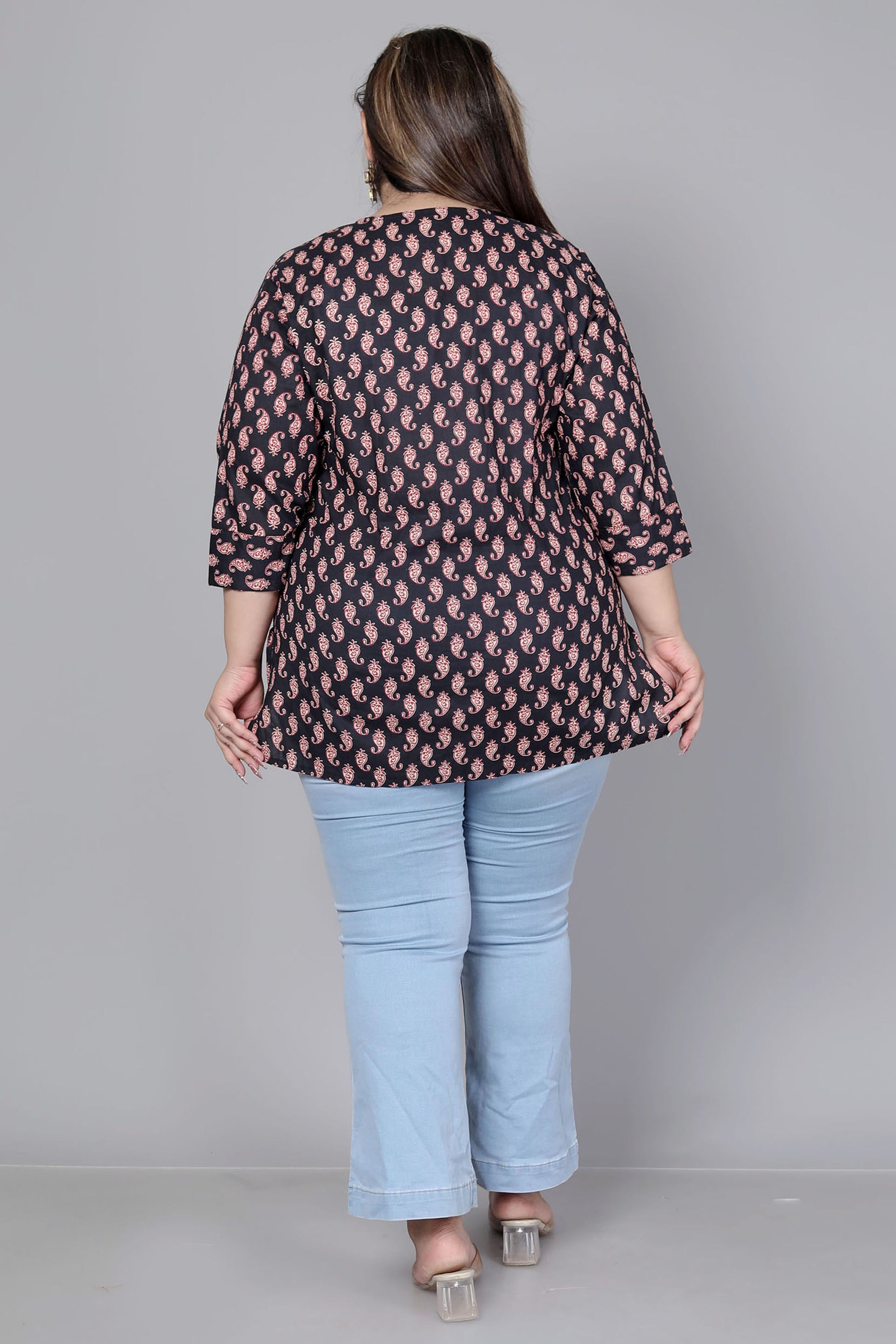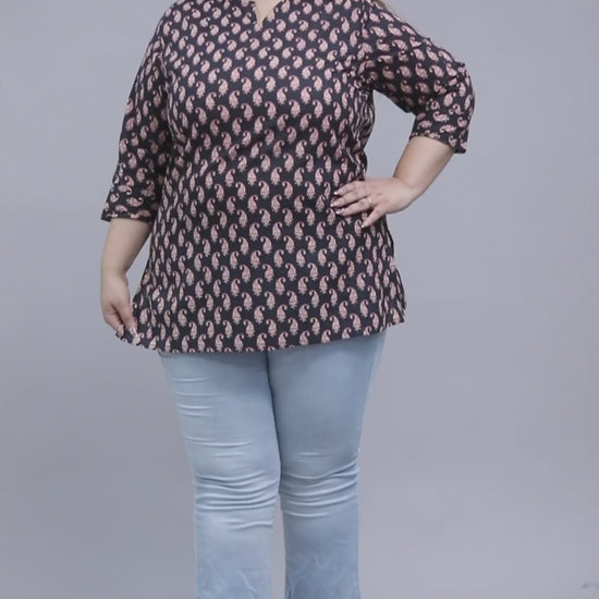 PAISLEY BLOCK MOTIF PRINT COTTON TOP IN BLACK COLOUR BY PLUSSIZEKURTI
