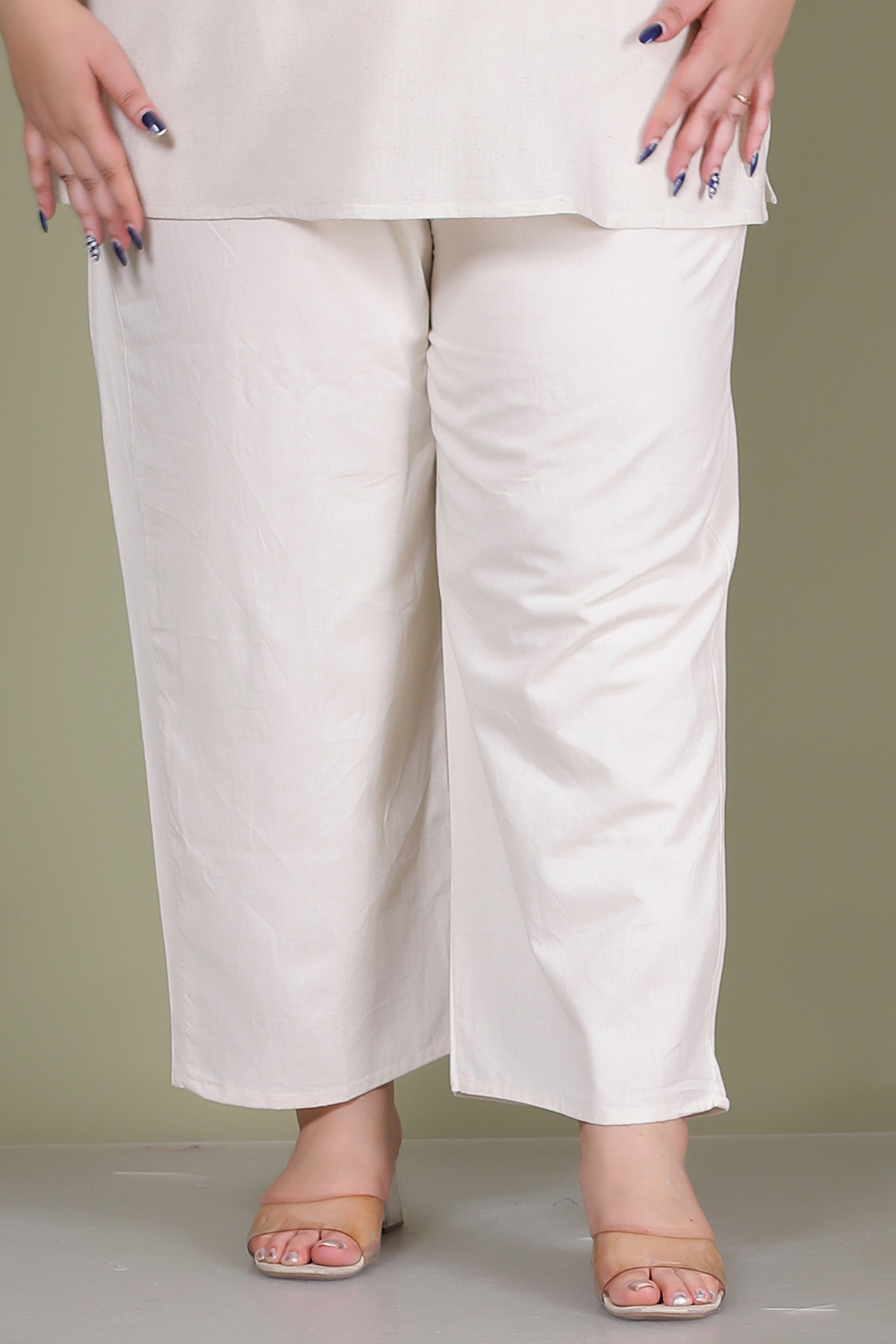 Keep your everyday style minimal and elegant with this off-white cotton flex co-ord set. Designed with a clean silhouette and subtle geometric embroidery on the top, this set offers breathable comfort and effortless sophistication—perfect for workwear, casual outings, and relaxed days.
