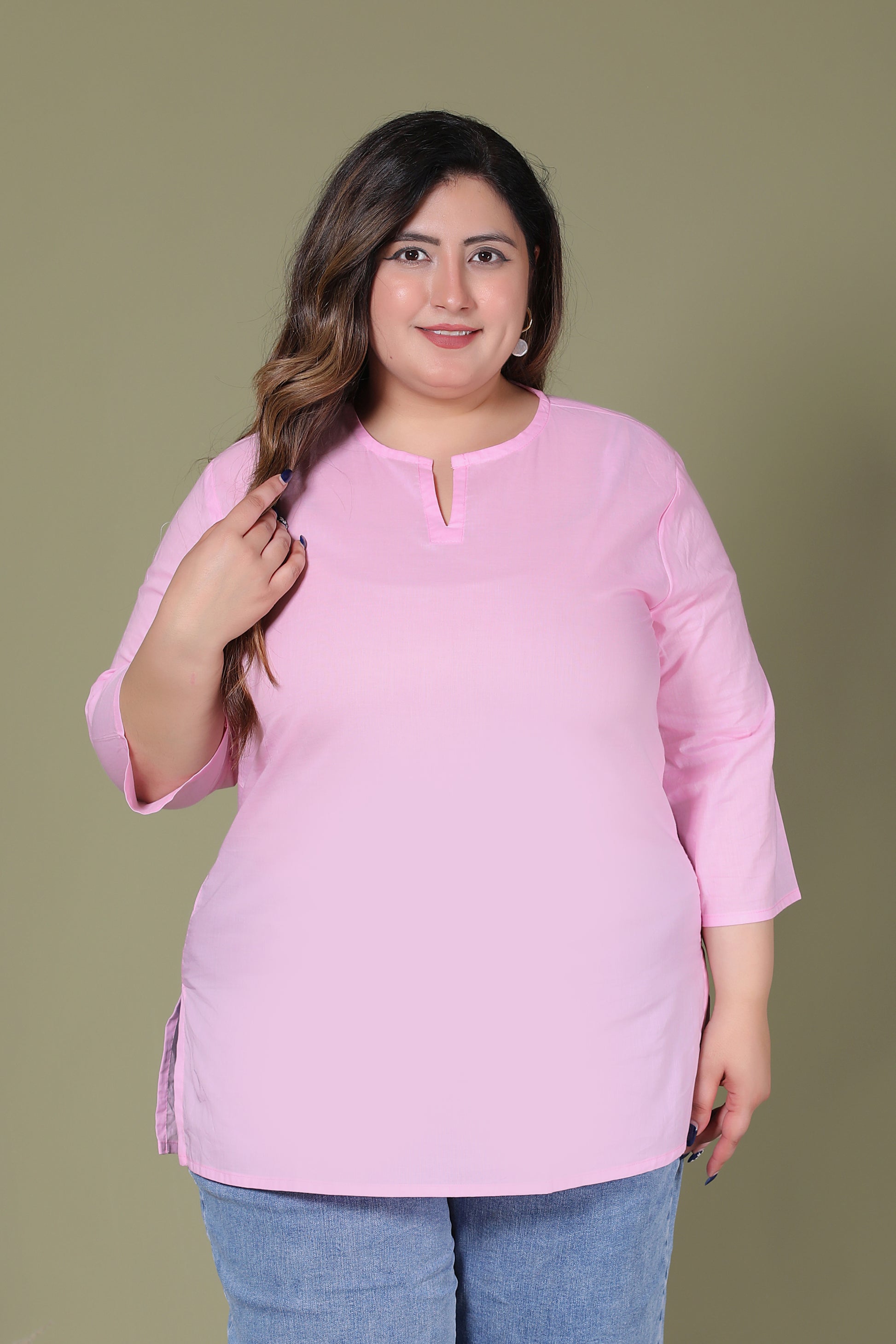 Top: Solid Babypink base, styled with a round neckline featuring a slit, 3/4 sleeves, length – 31