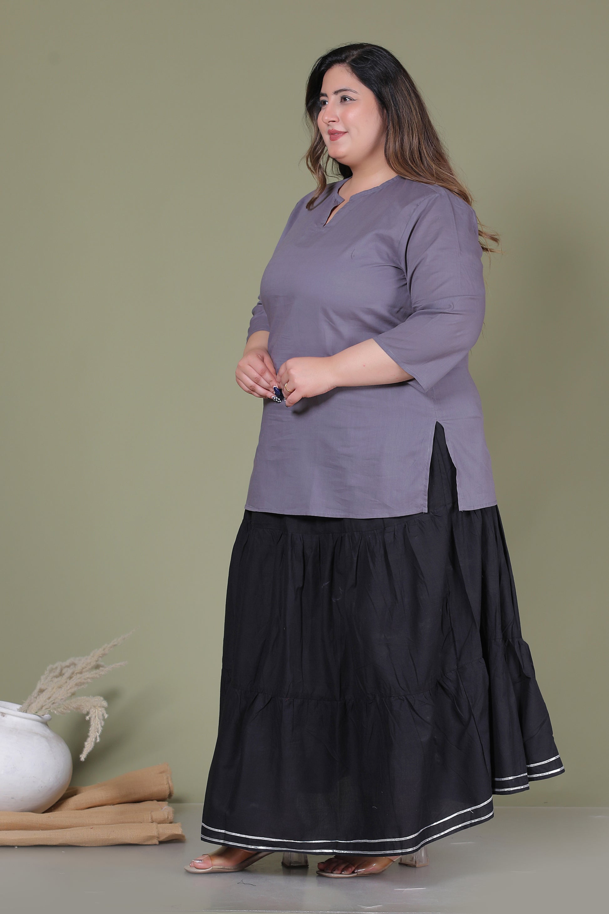 SOLID GOTTA DETAILING SKIRT IN BLACK BY PLUSSIZEKURTI